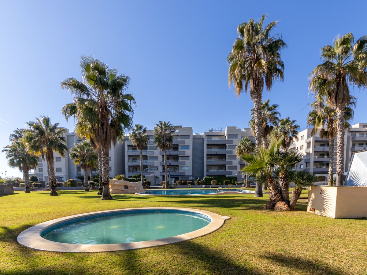 Čudovito popolnoma prenovljeno stanovanje s klimatsko napravo in zasebnim parkiriščem, ki se nahaja 3 minute stran od plaže. Uživajte v zajtrku s pogledom na morje na sončni terasi, preden se odpravite na veliko in čisto plažo v bližini. Zvečer se lahko sprostite ob gledanju filma na pametni TV-ju ali pa uživate v prijetnem obroku v eni od sosednjih restavracij. Idealno za družine, saj ima zaščiteno igrišče in parkirno mesto. Odlično je tudi za delo na daljavo zaradi hitre povezave Wi-Fi.