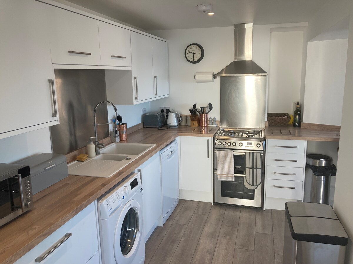 Uživajte v razkošnem bivanju z osupljivim razgledom na ta skriti dragulj prenočišča v očarljivem in zgodovinskem mestu Penryn, tik ob Falmouthu. Uživajte v čudovitem panoramskem razgledu iz udobja postelje in se sprostite v razkošni kopalnici, opremljeni s prho s slapom. Namestitev vključuje prostorno, popolnoma opremljeno sodobno kuhinjo, elegantno dnevno sobo, polnilnik za električna vozila in teraso za mirno in sproščeno doživetje. Idealno za pare, družine in strokovnjake.