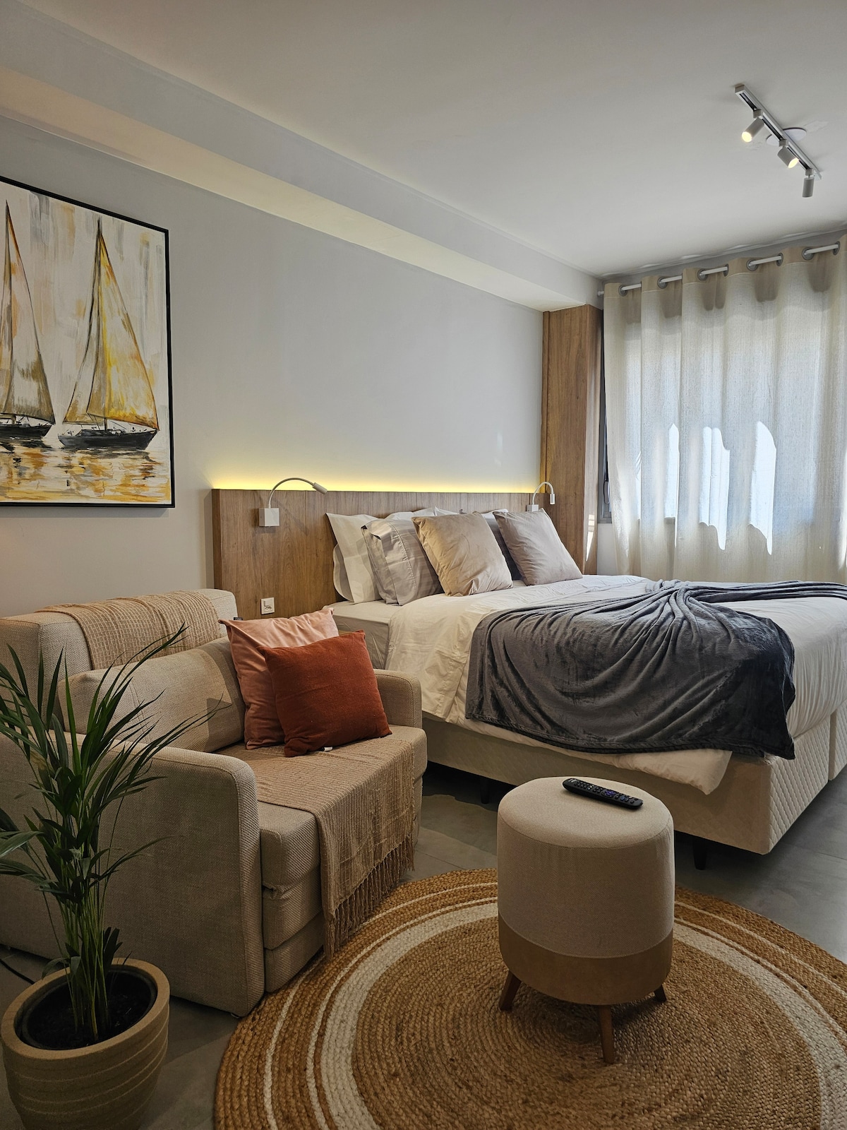 Odkrijte čar in udobje tega studia v živahnem okrožju Cidade Baixa. Prostor je integriran, sodoben in gostoljuben ter sprejme do 3 osebe z opremljeno kuhinjo in opremo, kot so klimatska naprava, internet 350 MB in pametna televizija. Vsebuje 24-urnega receptorja in samostojni vstop. V bližini več zanimivosti: Peš: Pq. da Redenção: 10min UFRGS: 10 minut Hosp. Santa Casa: 12 min Vožnja/Uber: Letališče Salgado Filho: 20 min Orla do Guaíba: 5 min JKP: 14 min Avtocesta: 10 minut Barra Shopping Sul: 15min
