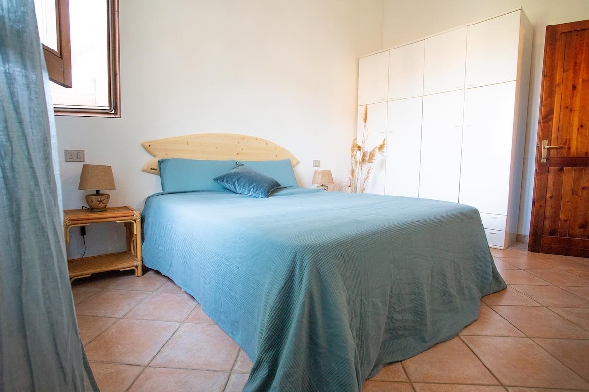 NOVO STUDIO STANOVANJE 10/25 minut od najlepših plaž na JUGOVZHODNI SARDINIJI, MURAVERA -COSTA REI- VILLASIMIUS- KORALNO PRISTANIŠČE Udobno neodvisno stanovanje v 1. nadstropju hiše, sestavljeno iz prostorna soba z zakonsko posteljo in garderobno omaro, kopalnica z WC-jem s prho in velikim umivalnikom, mini kuhinjska niša z mini barom za hitre obroke. Zasebna terasa s pogledom na vrt, obdan z drevesi, opremljena z mizo in stoli za večere na prostem.