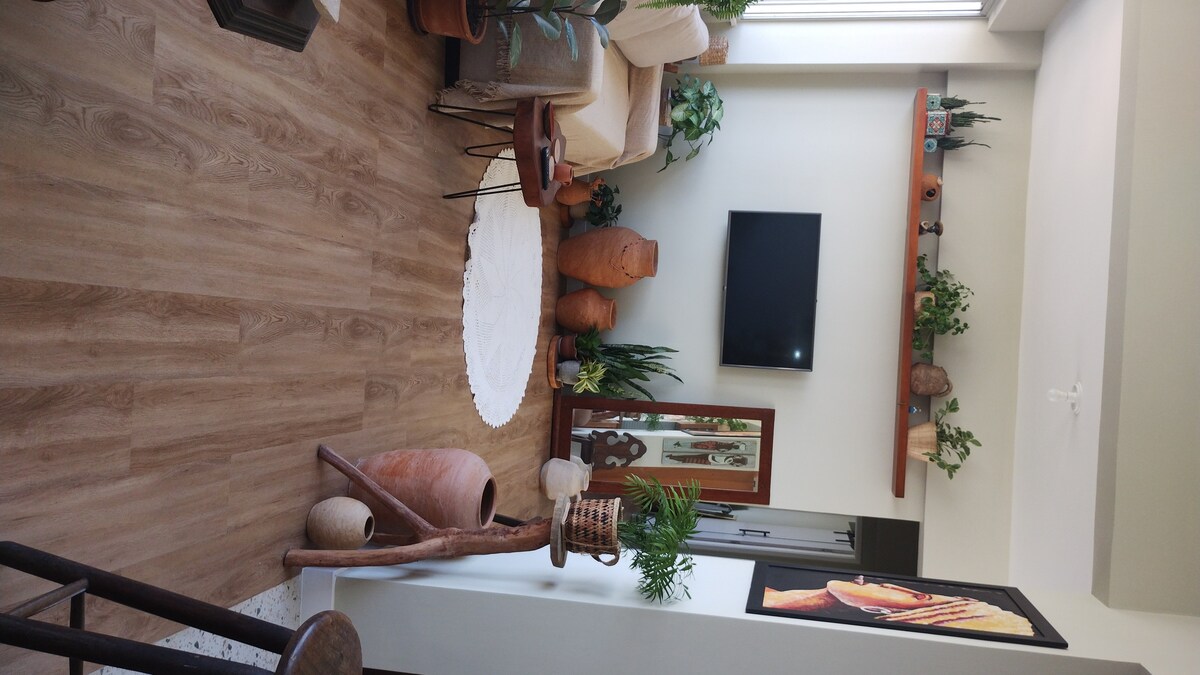 Butično doživetje Odkrijte ta barvit umetniški oddih s pogledom na zaliv Todos os Santos. Uživajte v ekskluzivnem dostopu do tretjega nadstropja z udobno spalnico, elegantno dnevno sobo in majhno kuhinjsko nišo na prostem. Sprostite se na strehi s kadjo in prho na prostem, medtem ko uživate v osupljivih sončnih zahodih. Preostali del hiše boste delili z mojo družino, dvema prijaznima psoma in dvema mačkama. Ponujamo vam čudovit zajtrk v glavni kuhinji.