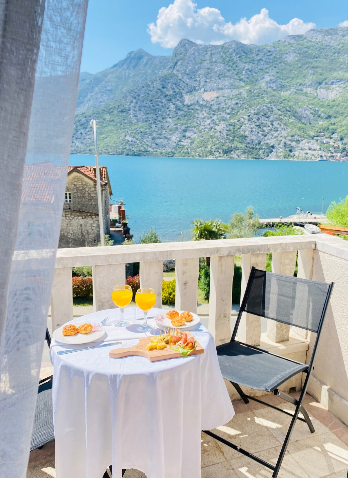 Cozy up on a stylish sofa steeped in the smart elegance of this bright apartment featuring herringbone wood floors, trendy furnishings, and pops of brilliant blue. Head to the balcony to enjoy mesmerizing sea and mountain views from a quaint bistro table. Large and comfortable living room with smart TV, fast internet, and a dining table with chairs as well as a balcony with seating area overlooking the Kotor Bay. Fully-equipped kitchen (refrigerator, dishwasher, multi functional microwave, hot plate, oven, toaster, juicer, kettle, coffee maker) available to you as well as all the other utensils you need, First bedroom with king bed and another bedroom with two separate beds that could be put together. A bathroom with shower, hairdryer and washing machine. Apartment is equipped with air condition system for both cooling and heating. It is on the 3th floor of the residential building without elevator. There is parking 1 minute away at the owner property or right in front of the apartment building. If you need anything at all that could make your stay better please don't hesitate to ask, and I'll do my best to accommodate you :) What I love most about hosting is getting in touch with guests with whom both me and my family share the same passion - traveling and discovering great places and cultures. I look forward to welcoming you soon! The apartment is set very near the center and the Old town, just minutes away by foot from historic sites, landmarks, museums, and scenic hiking paths. Waterfront restaurants, charming cafes, and shops are a short walk away. Nearest beach just 100 meters from the apartment. With all of this around, you might just decide to enjoy spectacular sea views from the balcony over a glass of wine. 10-20 minutes by taxi from the airport, 5 min by taxi to the bus station. Public transportation 100m. Old town, by foot, in 5 minutes Third floor of the building, no elevator!