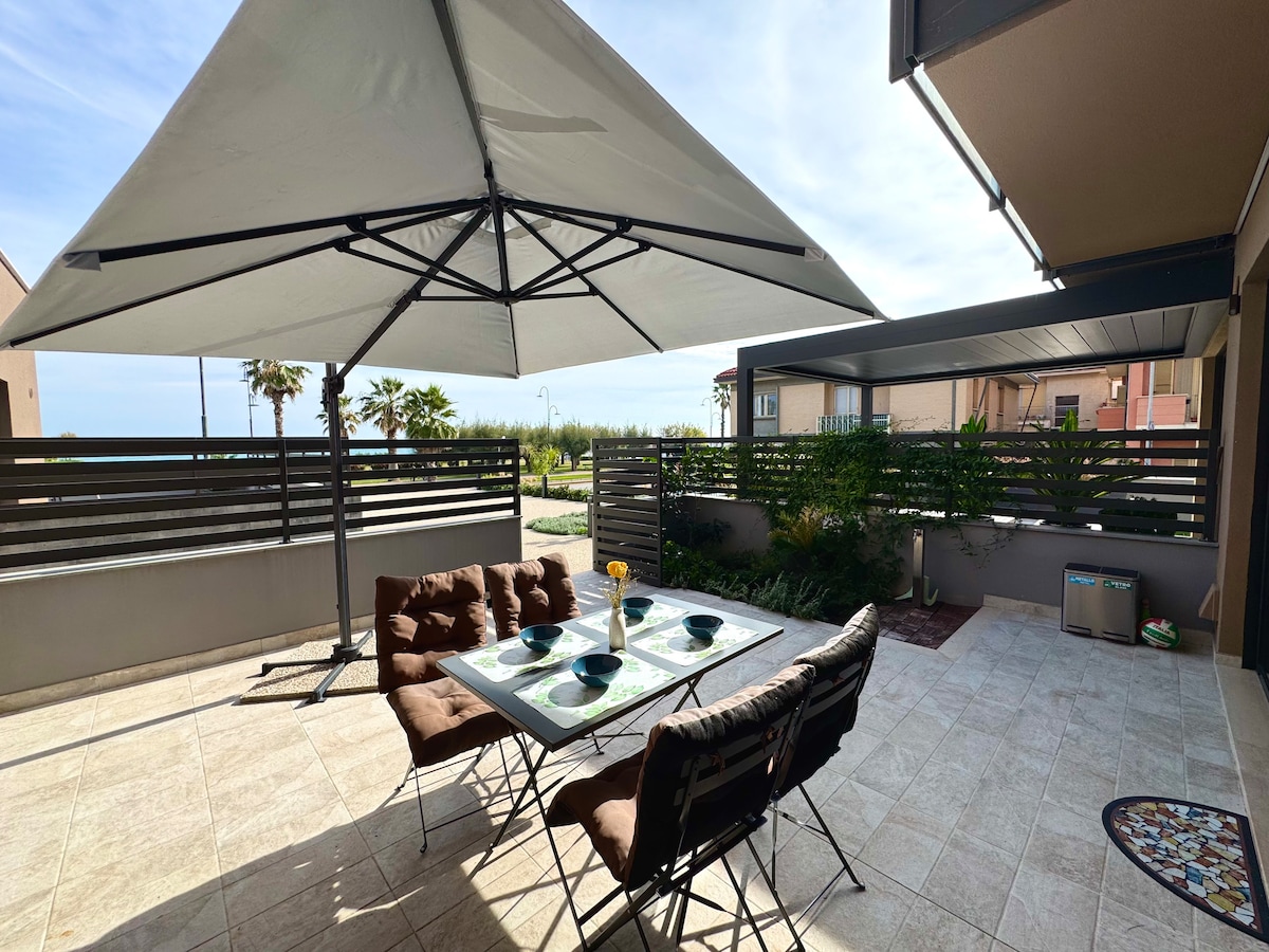 Elegantno na novo zgrajeno stanovanje ponuja 4 postelje (zakonska postelja in raztegljiv kavč), sodobno popolnoma opremljeno kuhinjo in oblikovalsko mizo ter prefinjeno kopalnico. Zunanji prostor z mizo za 4 osebe je kot nalašč za zajtrke ali aperitive na prostem. Le 900 metrov od plaže in 800 metrov od glavnega trga, v mirnem in dobro postreženem prostoru, je idealen za družine in pare. Rezervirajte zdaj in ne bo vam žal.