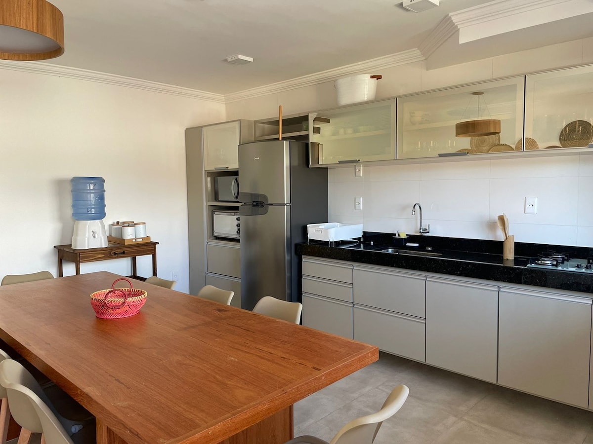 Acomodação espaçosa e completa em condomínio fechado, com segurança e portaria 24h. Acomoda no máximo oito pessoas podendo ser menos. Ambiente tranquilo e familiar, ideal pra uma noite de sono restauradora após um dia de passeio. Fica a poucos minutos das melhores praias de Arraial D'ajuda (Mucugê, Parracho e Pitinga). Próximo do centro e da rua do Mucugê (1500 metros). Para sua comodidade, não cobramos taxa de limpeza antecipadamente. Poderá contrata-la caso sinta necessidade, na recepção.