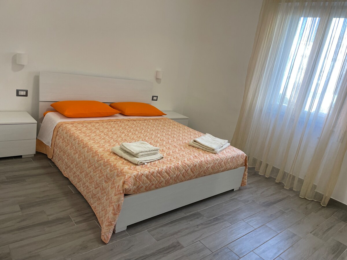 Delizioso appartamento si puo andare al mare a piedi .Climatizzato panoramico vicino alle spiagge, casa fresca ventilata completa composta da 2 camere da letto una matrimoniale e una doppia con 2 letti uno spazio lavoro bagno finestrato cucina soggiorno uscita su un poggioloTutte le camere hanno l'affaccio su balconcini con vista panoramica Parcheggio gratuito sotto casa vicinissimi si trovano supermarket gastronomia pizzeria farmacia bar frutta e verdura