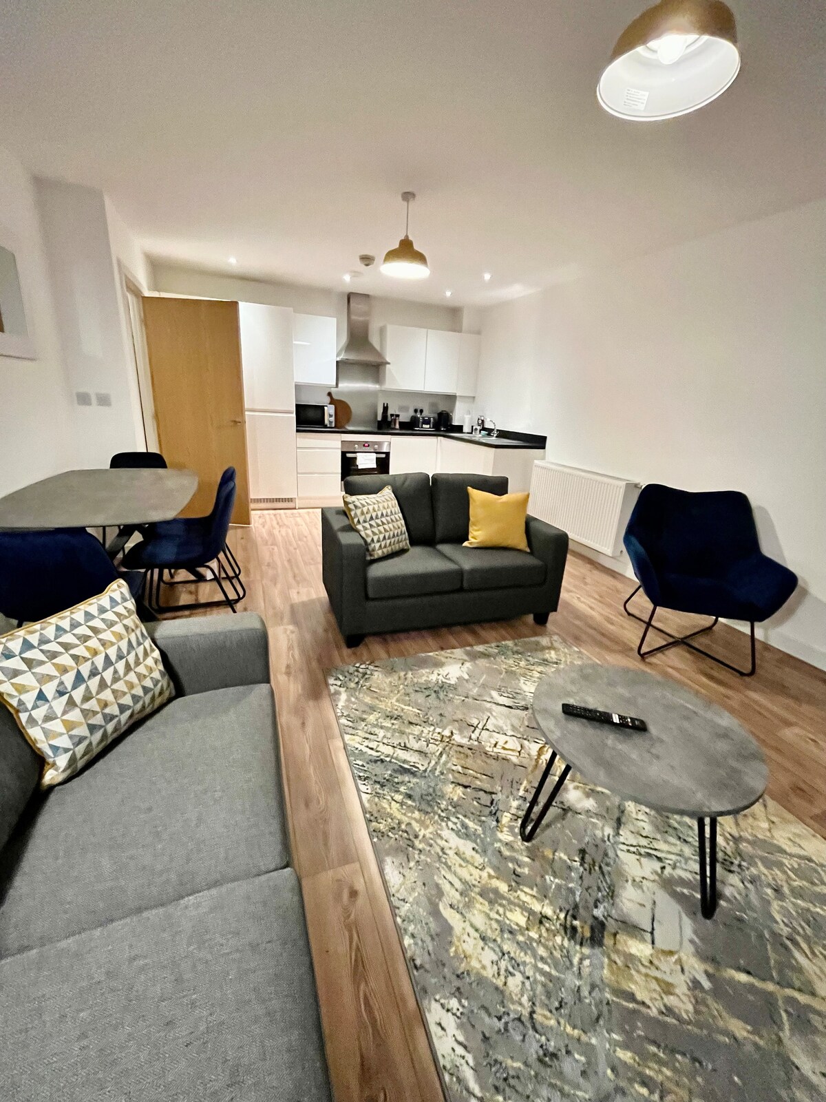 Recently renovated modern and spacious two-bedroom apartment in the heart of Portsmouth. Located just an 8-minute walk from Portsmouth Harbour station, this apartment offers an ideal location. It’s also conveniently close to Gunwharf Quays and the Historic Dockyards Museum. It comes with 1x free allocated parking with an option to park more cars for a small fee. It can comfortably accommodate up to five people, with three single beds, a king bed, and a sofa bed.