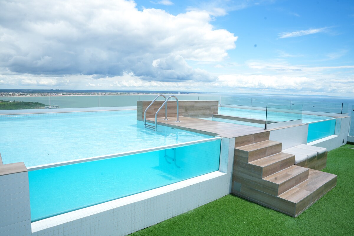 Dobrodošli v sanjski suiti s pogledom na morje. Uživajte v sončnem zahodu, morskem vetriču in udobju naše popolnoma opremljene nastanitve z aires Conditioned in hitrim internetom. Strateško se nahaja v zasebni urbanizaciji z dostopom do Piscinasa, jacuzzija, otroškega parka, telovadnice, kopalnic, prh, non stop varovanja itd. Odkrijte pravi pomen sprostitve in udobja na naslednjem oddihu z nami. Rezervirajte zdaj in doživite doživetje!