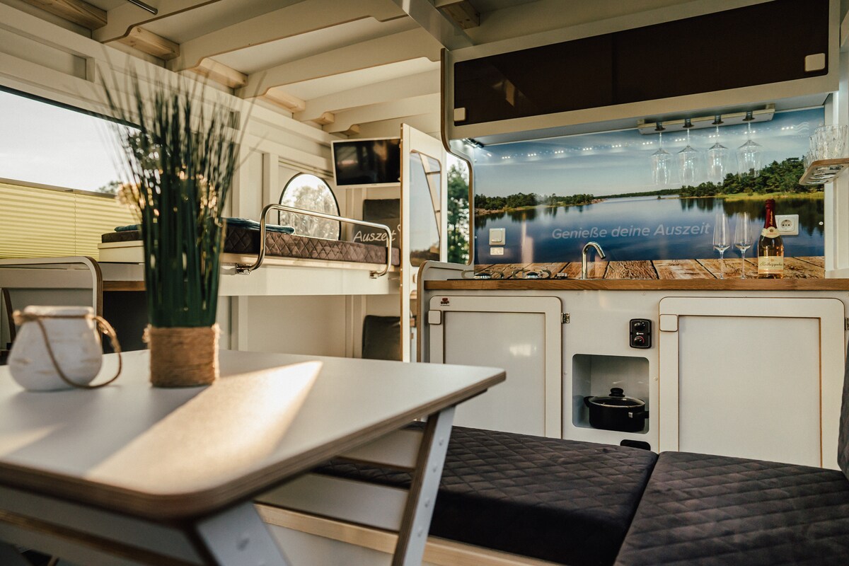 Gönn dir eine ganz besondere Auszeit und gleite hinüber in eine Welt wie aus einem Traum. Genieße das Wasser und die vollkommene Ruhe mitten in Berlin, während dich sanfte Wellen Schaukeln. Hier ein Lichtspiel auf der handgefertigten Holzvertäfelungen dort ein versteckter Hochsitz. Liebevoll zusammengesetzt aus Holz, Fundstücken und einer Hand voll magischer Details, bilden diese 2 Boote einen Ort an dem Alice und ihre Freunde einen fabelhaften Tee genießen könnten.