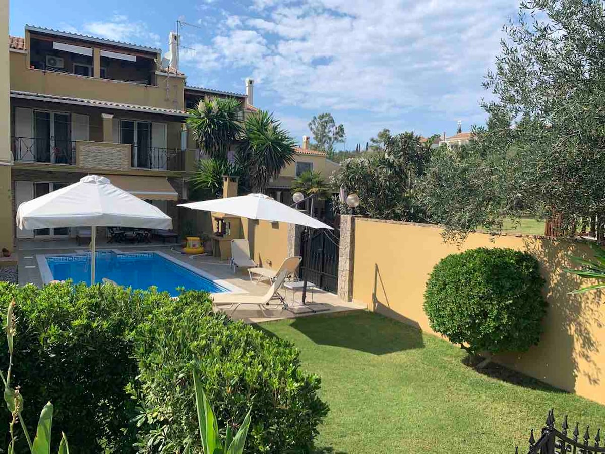 Vila Verde je tradicionalna vila na Krfu, nad hribom z amfiteatrskim okoljem in obkrožena z ogromnim oljčnim nasadom. Neverjeten razgled na morje, morje Gouvia , stara utrdba ,staro mestno jedro Krfa in otok Vido lahko vidite z vseh oken in verandov hiše. Iz hiše lahko vidite tudi Albanijo in Igoumenitso. Vila je idealna za družine in prijatelje. Villa Verde vam lahko zagotovi razkošne sproščujoče počitnice!