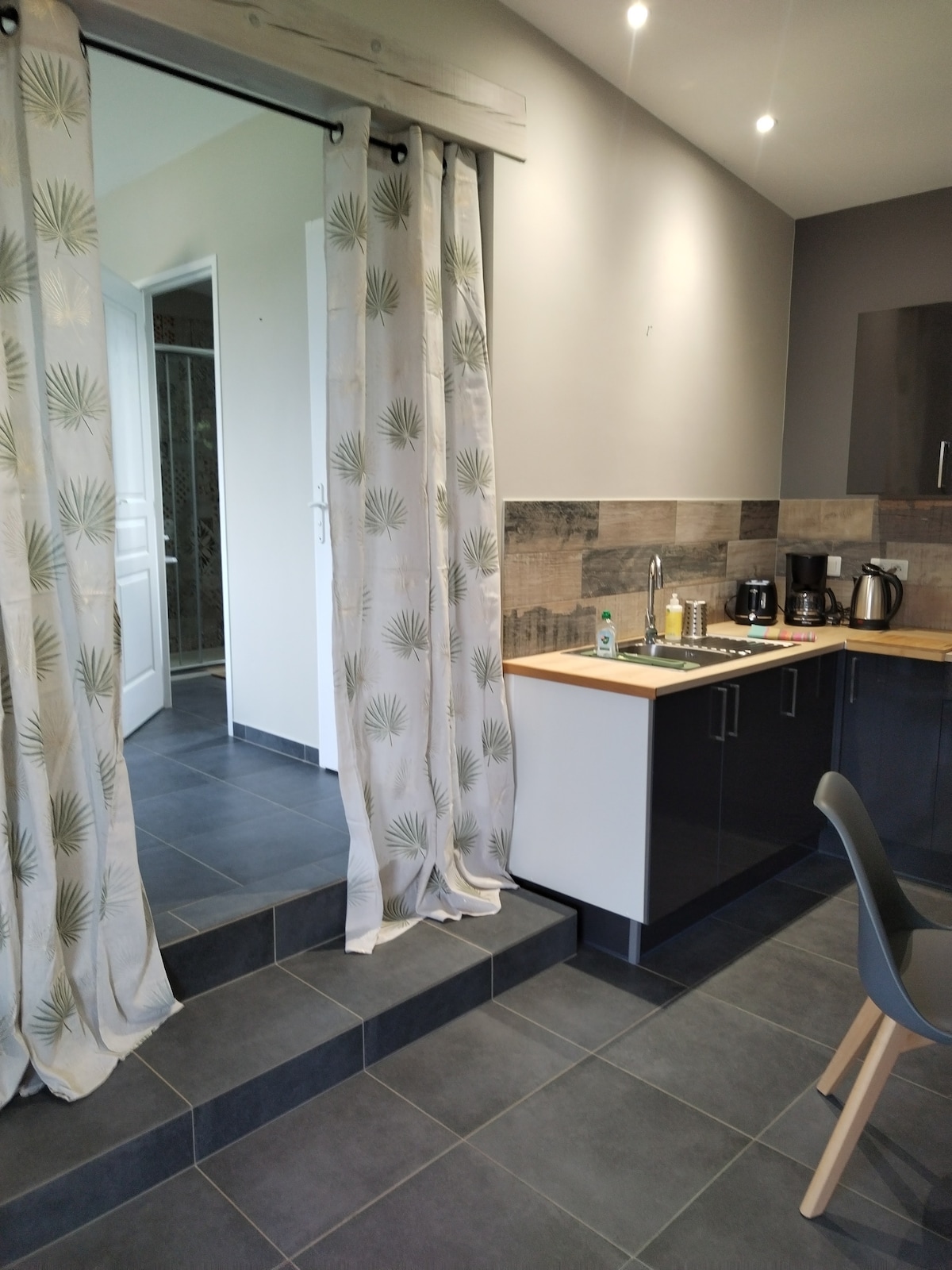»Le Pied à Terre« 2 zvezdici, ponuja mir in udobje. Celotna hiška na deželi 35 m2. 160/200 postelja s spominsko peno, bombažnimi rjuhami in brisačami. Na voljo je opremljena kuhinja, kava, čaj, zeliščni čaj, sadni sok. Kopalnica s prho in gelom za prhanje. Opremljena terasa, ležalniki, vrt, zavetišča za kolesa. Dobra povezava WI-FI z brezplačnim parkiranjem v zaprtih prostorih in na prostem. Ni spregledano. Kolesarska pot je 100 metrov stran. Trgovina z živili 3 minute hoje.