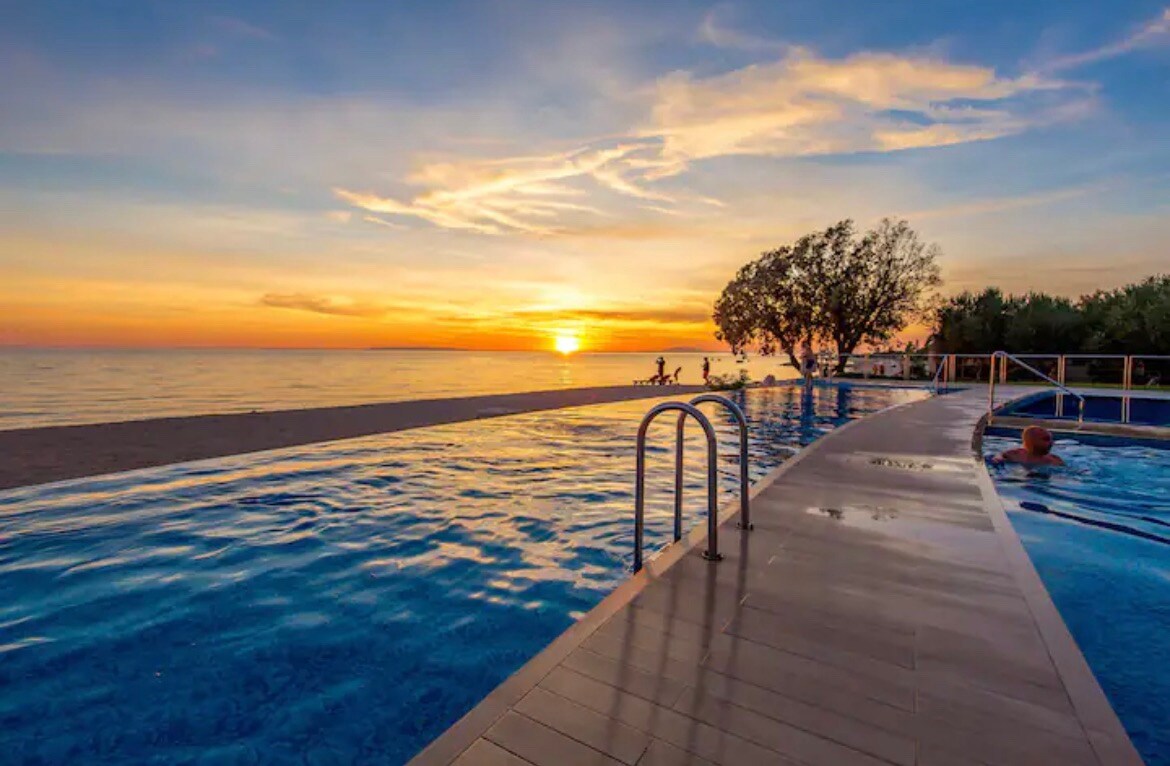 Apartment Lino 1 is located in Pirovac, Croatia. Located right on the beach front it offers some of the most beautiful seaside views and stunning sunsets you will ever see. The apartment is 500m from the town centre so just a nice short walk along the coast and you're there. Apartment Lino 1 (65 m2) has air conditioning, flat screen TVs and WiFi. Located on the 1st floor, features a very big living room, kitchen, two bedrooms, two bathrooms and two terraces with sea views. Sleeps up to 6 people.