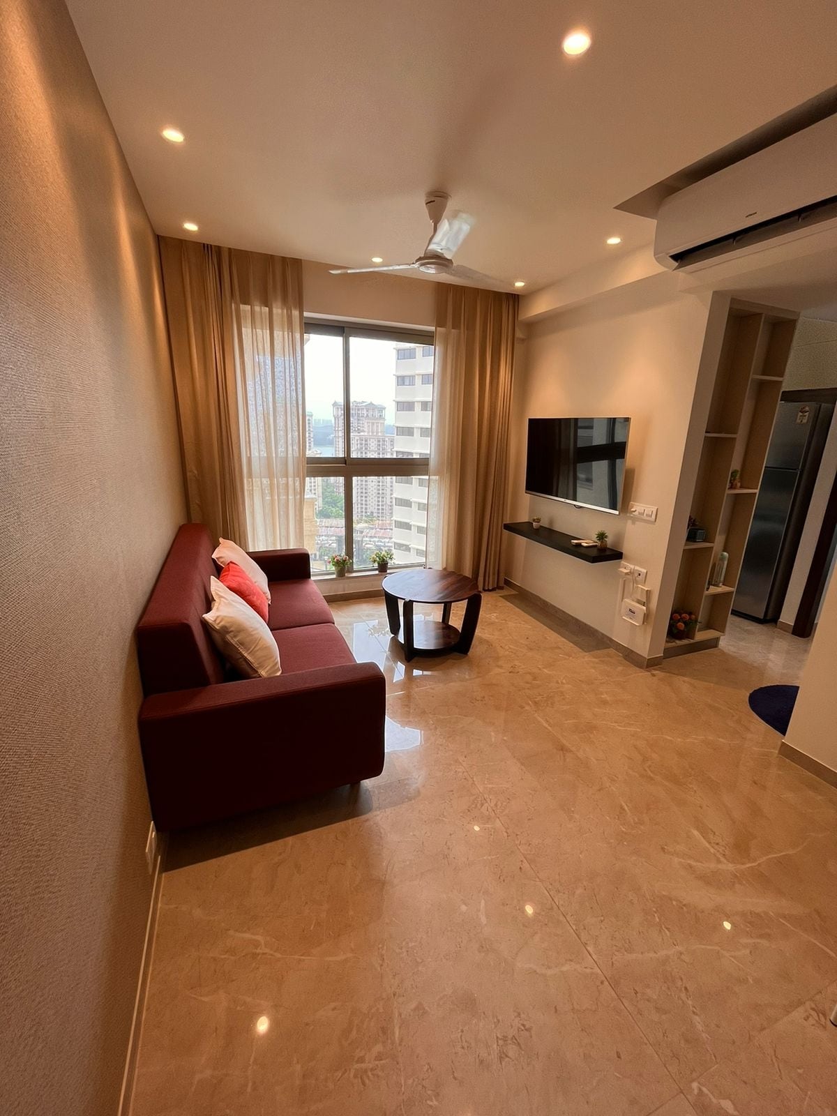 It's ultra stylish 1 bedroom smart kitchen & Living room apartment located 30 minutes from T2 (International airport) , 7 mins drive to R city mall 30 mins to BKC and many more important places close by. Its centrally located with a awesome view of vibrant skyline and glimpse of peaceful lake overlooking the apartment.Great for kids as parks and lot of activity available nearby. Not to forget many happening night life, pubs & discs nearby.