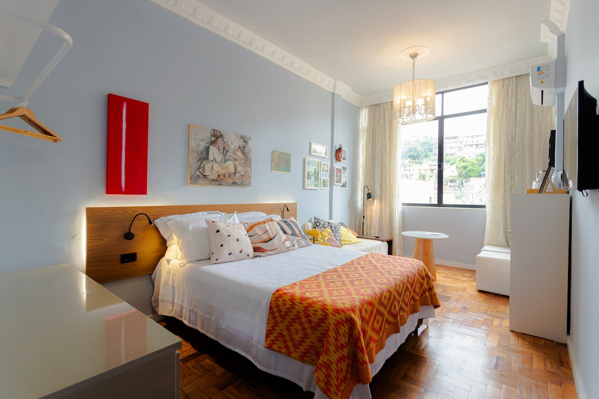 Novo, sodobno in dobro locirano garsonjero v osrčju Ria! Popolnoma zaseben prostor z udobno zakonsko posteljo in svežo posteljnino, opremljeno kuhinjo, hitrim internetom in domačo pisarno v klimatiziranem okolju. Zavarujte stavbo z vratarjem, ki je na voljo non stop. 🕢 Znamenitosti v bližini in povprečni časi hoje: 🚴 2 minuti do kolesarske postaje 🛒 3 minute do supermarketa 🚇 8 minut do glavne postaje podzemne železnice/VLT 🎉 8 minut do Sambadroma 🌳 10 minut do Campo de Santana 🎭 10 minut do Arcos da Lapa (z avtomobilom)