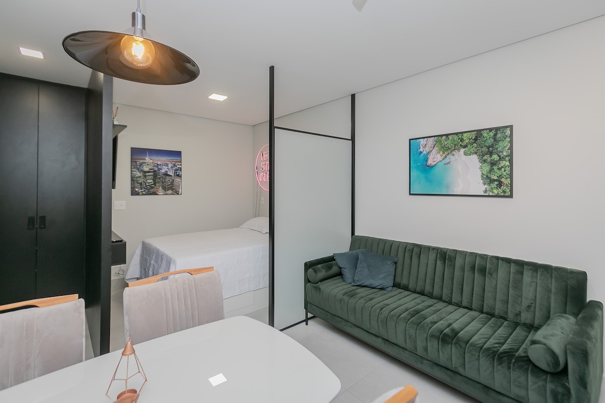 Popolnoma opremljeno predelano stanovanje v 22. nadstropju s spektakularnim razgledom na mesto. 700 MB hitre internetne povezave in 50-palčni televizor z dostopom do različnih storitev pretočnega predvajanja, vključno z YouTubom, Disney+ in Amazon Prime Video. Telovadnica se nahaja v stavbi, da ohrani rutino vadbe. Poleg tega je v stavbi na priročnem mestu tržnica za vaše dnevne potrebe. **Opomba:** parkiranje ni na voljo na kraju samem. Parkirišče v bližini: Av. Parana 69