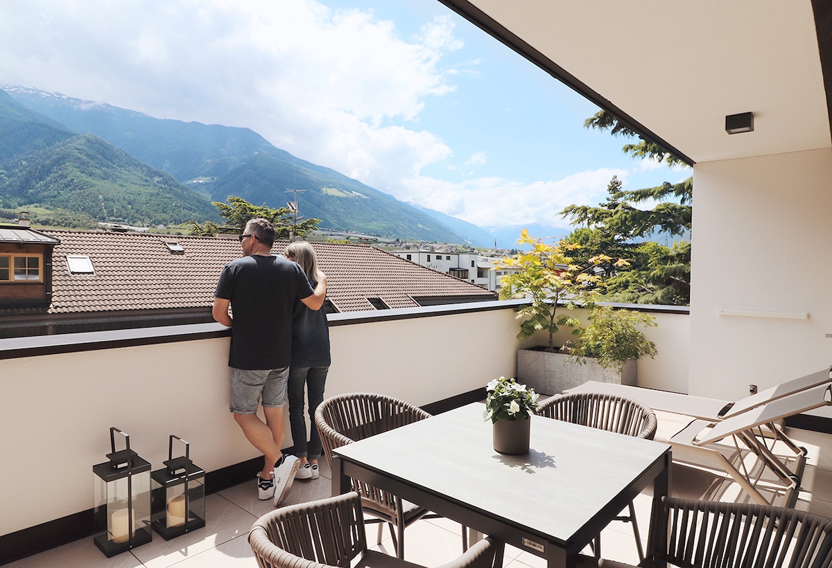 Pridite v DAHOAM s sanjskim razgledom na Merano – vašo destinacijo za iskalce miru, stare 14 let ali več. Veselimo se edinstvene kombinacije bližine narave, sodobne, trajnostne arhitekture in visokokakovostne opreme, da ne boste ničesar zamudili. Velika okna ujamejo sončno svetlobo. Sprostite se lahko na udobnih terasah. Finska zunanja savna, naravni bazen in masažna kad na vrtu zagotavljajo čisto sprostitev. Idealna lokacija za pohode in čudovite sprehode. Obiščite nas!