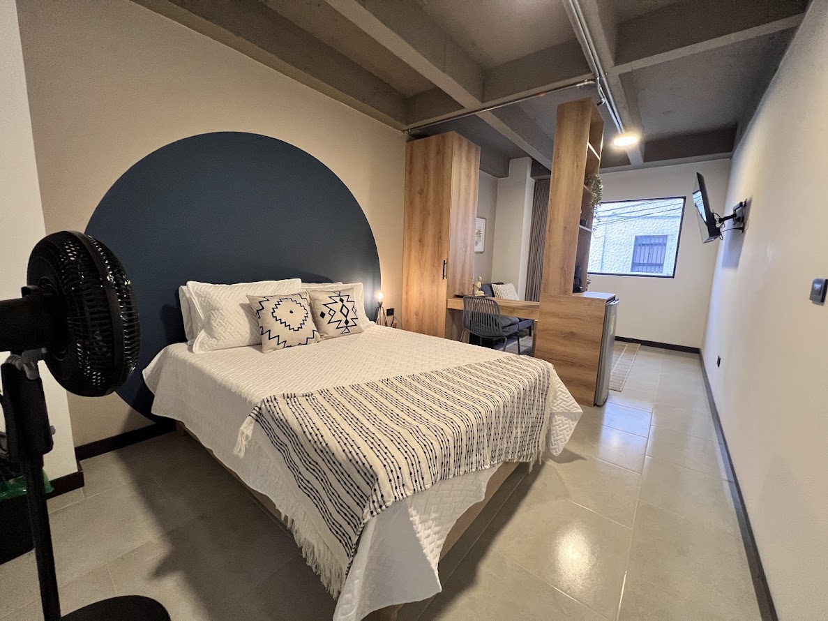 Habitación moderna que combina diseño, comodidad y excelente ubicación. Cuenta con cama doble, sala con sofá cama, escritorio, clóset y baño privado. Ubicado en un barrio seguro y tranquilo, cerca de puntos turísticos y con fácil acceso al transporte. Ideal para parejas, viajeros solos o trabajo remoto que buscan un espacio cómodo, nuevo y bien ubicado en Medellín.