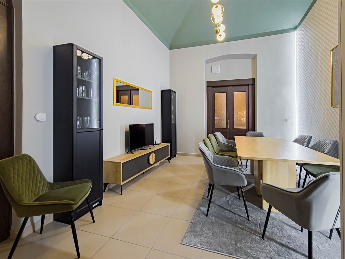 2023 Finalist VRHUNSKEGA tekmovanja v sodobnem klasičnem dizajnu. Bivajte v najbolj elegantnem stanovanju, ki ste ga kdaj videli. Upoštevajte, da NE gre za ZABAVO. Najboljša lokacija: - 2 min od Narodnega muzeja in trga Wenceslas. - 3 min od glavne železniške postaje. - 1 min od najlepšega parka Riegrovy sady. Oprema - gledanje filmov v kakovosti domačega kina - velikanski zaslon - sprostite se v infrardeči savni Zasnova - skrbno izbrani elementi in pohištvo, ki poudarjajo zgodovinski slog