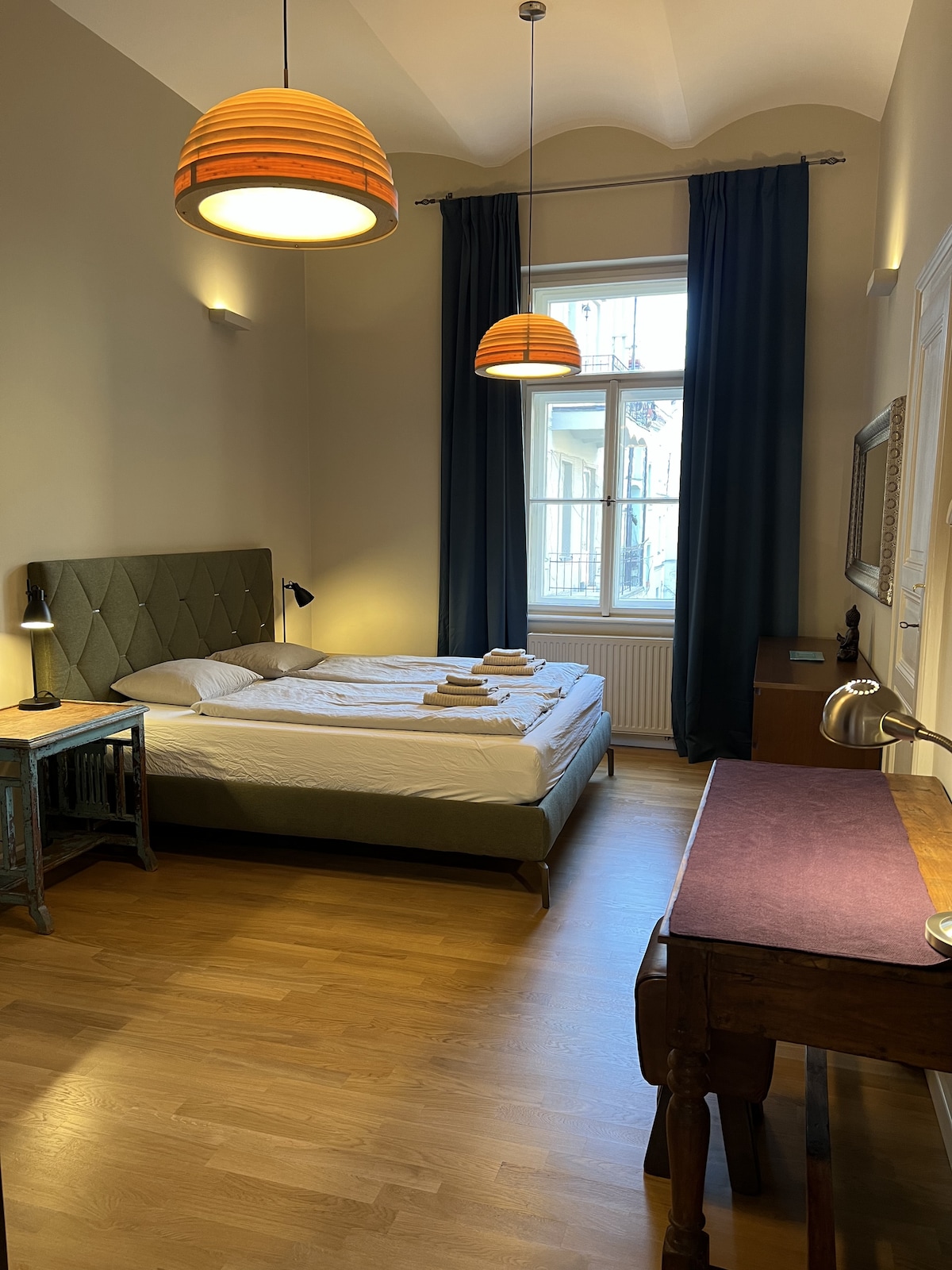 Wake up to views of the Old Jewish Cemetery in Prague’s Old Town and enjoy a quiet stay. The apartment is on the second floor (no elevator). The living room faces the cemetery, and the bedroom is on a calm street with limited traffic. Just steps from Charles Bridge, Prague Castle, and Old Town Square, you can explore everything on foot. Prague is also featured in Dan Brown’s novel The Secret of Secrets. Plenty of excellent restaurants are close by.