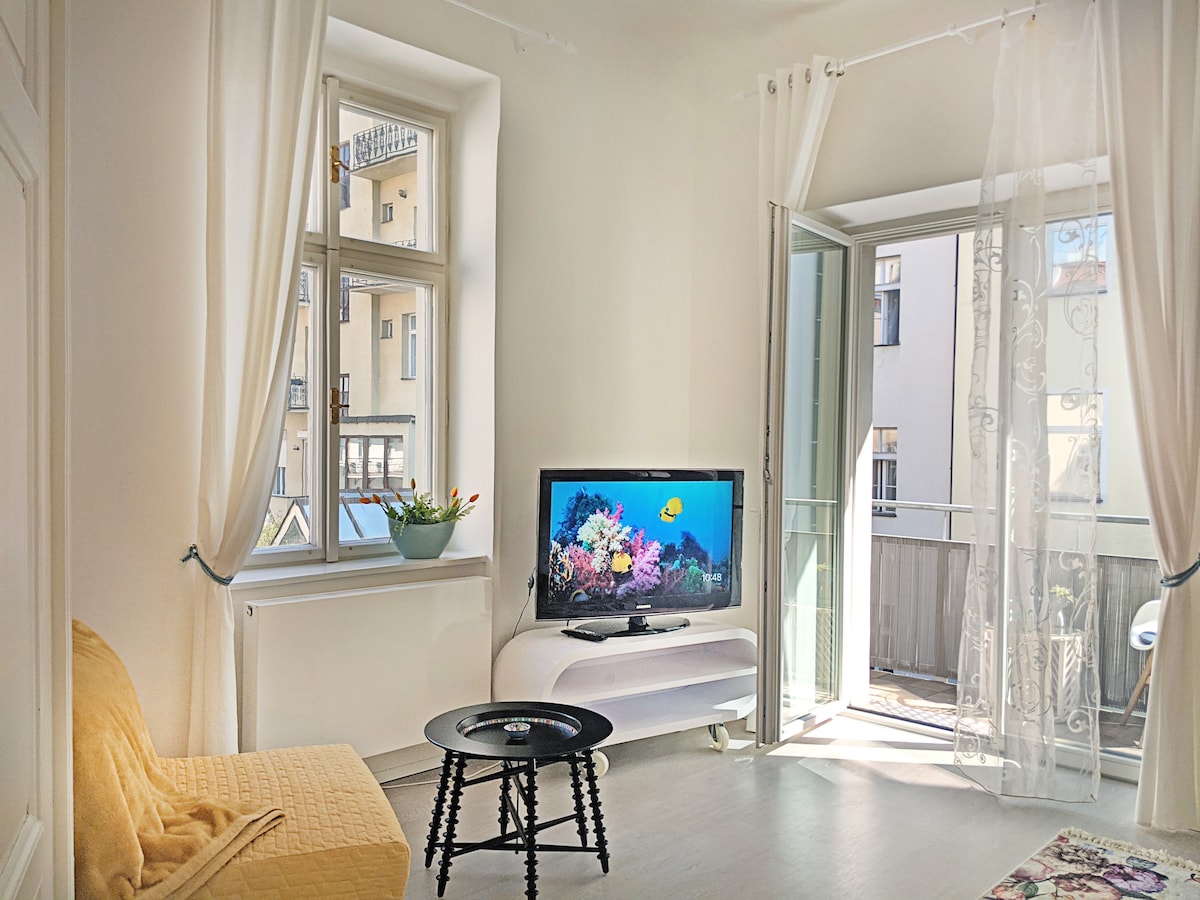 To očarljivo, okusno prenovljeno trisobno stanovanje (kuhinja/jedilnica, dnevna soba in spalnica) se nahaja v secesijski stavbi v Vinohradyju (vinogradi), eni najboljših in najprestižnejših sosesk v Pragi. Namestitev žal ni primerna za malčke ali otroke, mlajše od 15 let. Če je otrok starejši od 15 let, je gost, ki je v celoti plačan in lahko sprejme samo enega dodatnega odraslega gosta.