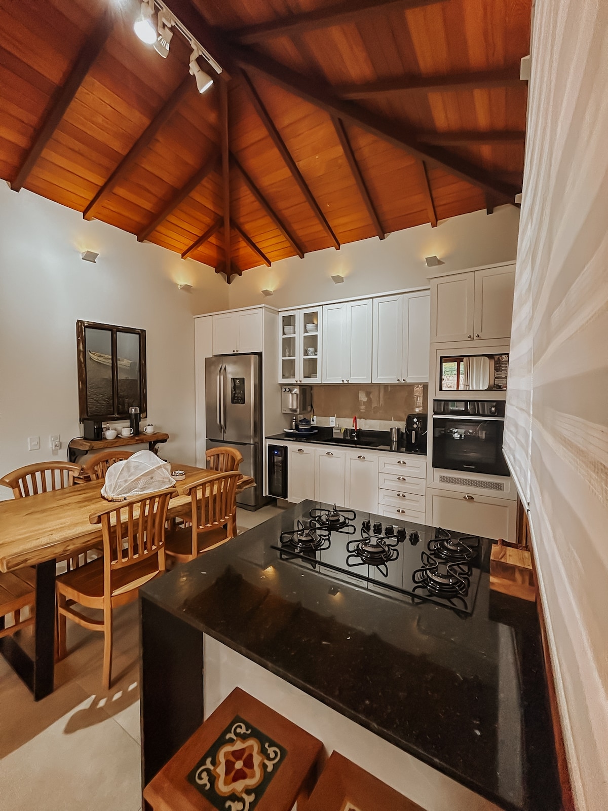 Hiša z vplivom balijskih vil, rustikalna, vendar izjemno udobna in prefinjena, z vsem najvišjim standardom, pohištvom, napravami, posteljo in kopalnicami. Prostor za gurmanske sanje z žari na plin in oglje, pečico na drva, kuhalno ploščo in kadilcem. Toplice z ogrevanim 1,4.000 litri, savna, polna hijau kamna s panoramskim razgledom na gozd. 5 ogromnih platna, od tega 2 75". Equipamentos Elettromec, Kitchen Aid, Le Creuset. Internet 500 Mb. Paradise for Food Lovers!