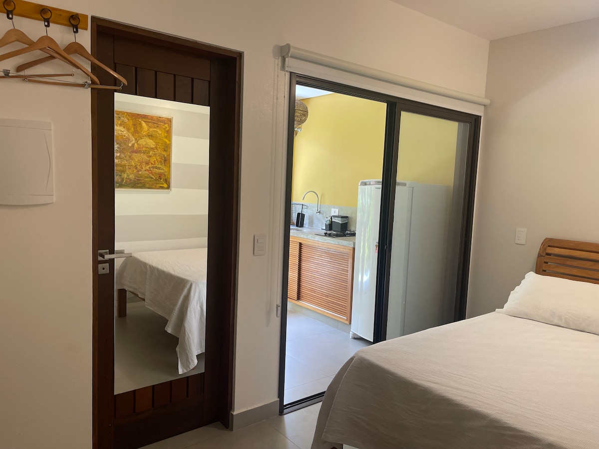 Popolnoma nov, miren in očarljiv prostor. Apartma z zakonsko posteljo, bralnimi lučmi in smrdljivo posteljnino. Kuhinja s filtrom za vodo, dvema gorilnikoma in kuhinjskim priborom. Zelo lep balkon z majhno mizo, udobno visečo mrežo in bazenom, ki je le nekaj korakov stran. Vse je narejeno z naklonjenostjo, da bodo lahko sprejeli ljudi z dobrim okusom v iskanju miru. Serenada je posledica simfonije atlantskega gozda Ilhabela, enega najlepših otokov na brazilski obali.