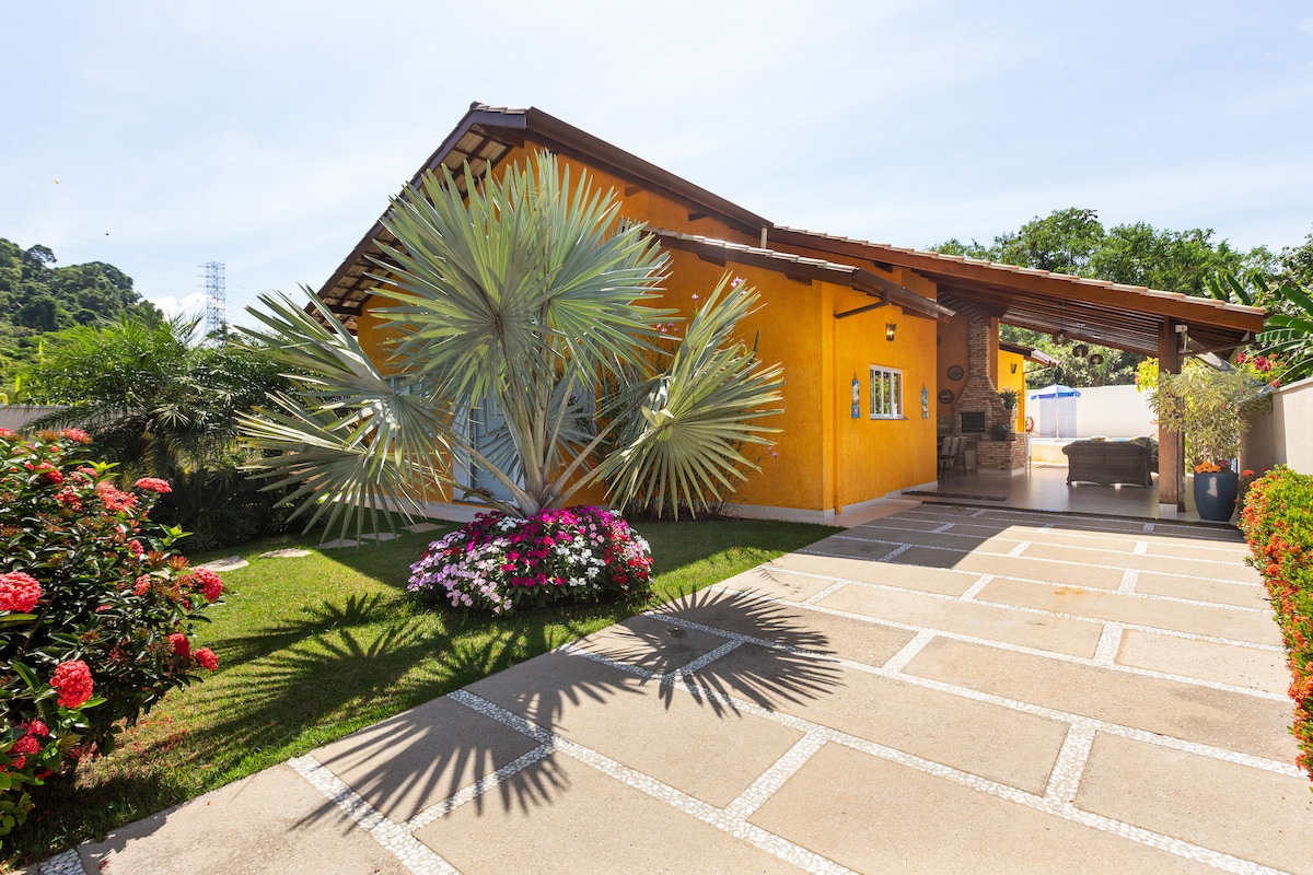 ** Somos hišni ljubljenčki so dobrodošli! Hiša s 3 spalnicami (1 spalnica v spalnici), klimatsko napravo, 3 kopalnicami, velikim in lepim vrtom, polno kuhinjo, bazenom, omrežjem Wi-Fi z vlakni 300 MB, žarom in KRUŠNO PEČJO! Sprejme 10 oseb. Garaža za 03 avtomobilov. Hiša je vesela, sodobna in okusna. Nahaja se v mirni ulici v stanovanjski parceli z stražarnico, z možnostjo vstopa skozi vhod v stanovanje Samola. Hiša se nahaja na čudoviti plaži Lagoinha v Ubatubi, le 8 minut hoje do plaže (500 m).