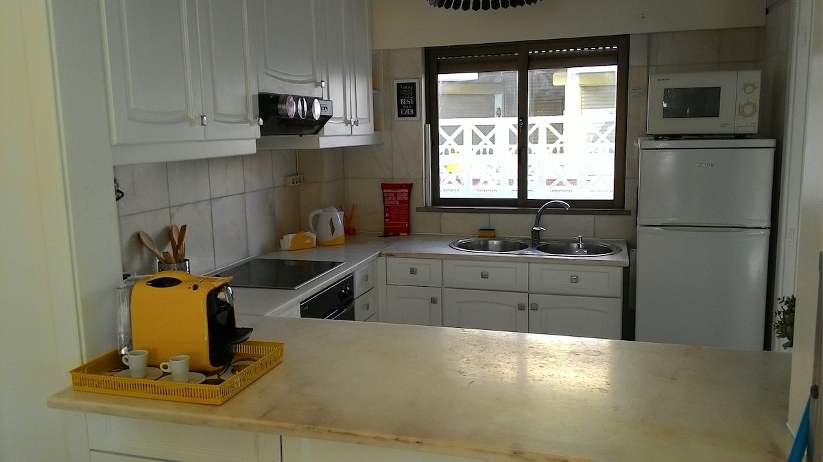 Apartamento de tipologia T2 ( 2 quartos), com cama de casal e uma cama individual na sala , 1 casa de banho, sala , cozinha (equipada com frigorífico, fogão, maquina de lavar roupa, microondas, torradeira, maquina de café) , situado no 3º andar de edifício sem elevador, a 600 m da praia e do centro antigo da cidade , com ar condicionado.