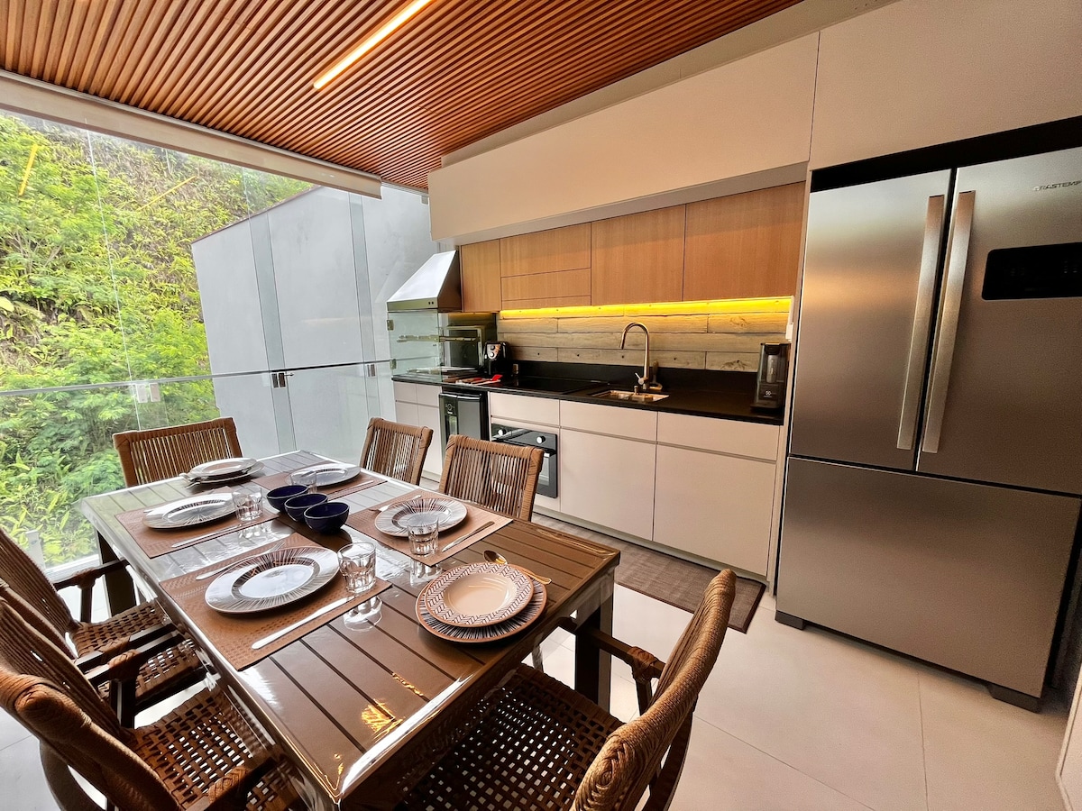 Dobrodošli v prenočišču ob morju na severni obali São Paula! Ponujamo vam popolno doživetje udobja, sloga in povezanosti z naravo — vse z morjem pod vašimi nogami. V manj kot minuti hoje se boste dotaknili vode plaže. 📍 Lokacija: nekaj minut hoje od očarljive Modre lagune in le 5 minut vožnje do supermarketa, lekarne in trgovin. Od središča mesta Caraguatatuba smo oddaljeni 20 minut, od Ilha Bele in São Sebastiãa pa približno 1 uro.