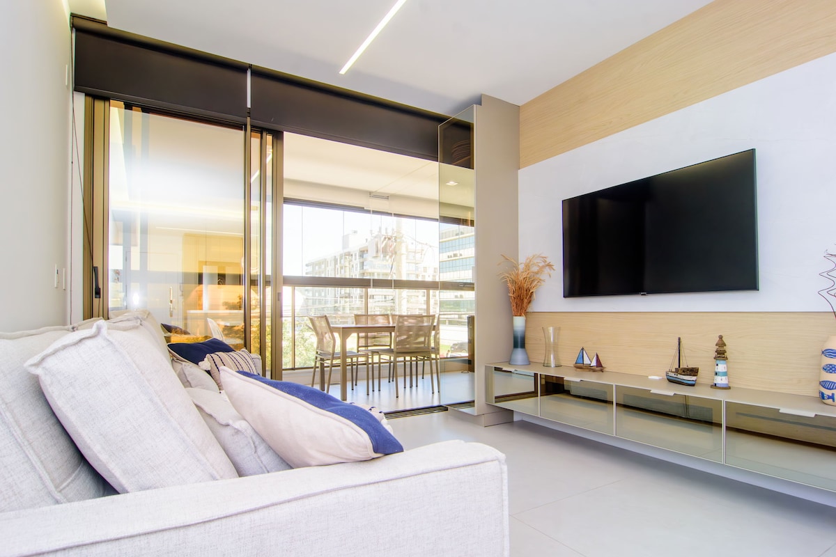 Relax, unwind, and enjoy the sun in one of the most beautiful places in Brazil! From the balcony, you can feel the breeze and enjoy the view at sunset, or wake up and decide whether the day is perfect for the beach or a heated pool. The apartment is perfectly located for singles or couples who want to enjoy the lively bars and restaurants of Jurerê Internacional without walking far. It’s also ideal for bringing young children and enjoying the peace and amenities of a resort.