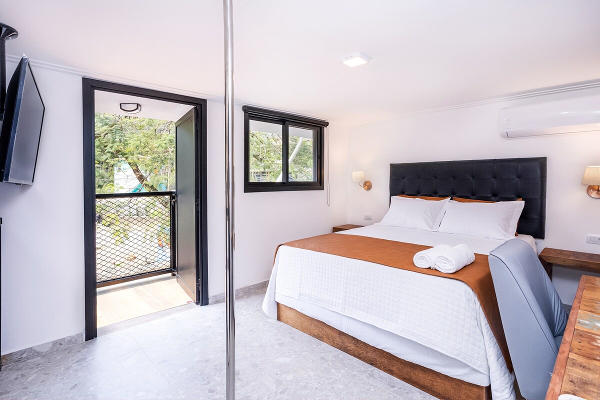 Stil in udobje! Zajtrk je vključen. Soba Premium, ki meri 38m ² in se nahaja v zgornjem nadstropju, ponuja prefinjenost in udobje. Opremljen je z zakonsko posteljo (Queen), pametno televizijo in klimatsko napravo, plesom na drogu, kadjo za sproščanje, prho s plinskim ogrevanjem, sušilcem za lase, mini barom, mikrovalovno pečico, omaro ali stojali za plašče, kopalnimi plašči in zasebno kopalnico. Soba Premium ponuja visokokakovostne storitve, kot so Alexa, dnevno čiščenje in zajtrk na posameznih pladnjih. Sprejme lahko največ 2 osebi.
