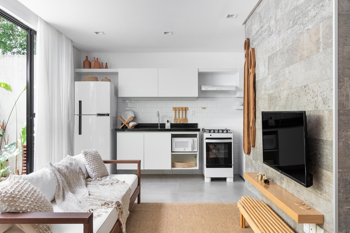 Uživajte v nepozabnih dneh v Tamandaréju! Sodobno stanovanje s klimatsko napravo, Wi-Fi-jem, opremljeno kuhinjo in neposrednim dostopom do plaže. Sprostite se v neskončnem bazenu s panoramskim razgledom na ocean in uživajte v telovadnici s tropskim razgledom. Udobje, eleganca in praktičnost na enem mestu — idealno za družine, pare ali prijatelje, ki iščejo počitek in najboljše na obali Pernambuca!