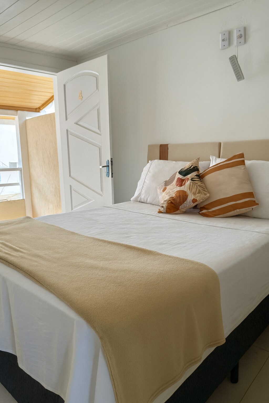 O Varanda da Praia é uma suíte aconchegante com cozinha e banheiro privativos. O apto possui roupa de cama, toalha de banho, utensílios básicos de cozinha, tv, ar condicionado e wifi. Na área externa e comum à todos os apartamentos tem um varandão com vista para a rua principal e, também, vista lateral da praia. A suíte está muito bem localizada, quase na esquina da praia e próxima ao comércio local, restaurantes e agencias de passeio. Venha ter momentos inesquecíveis neste paraíso natural