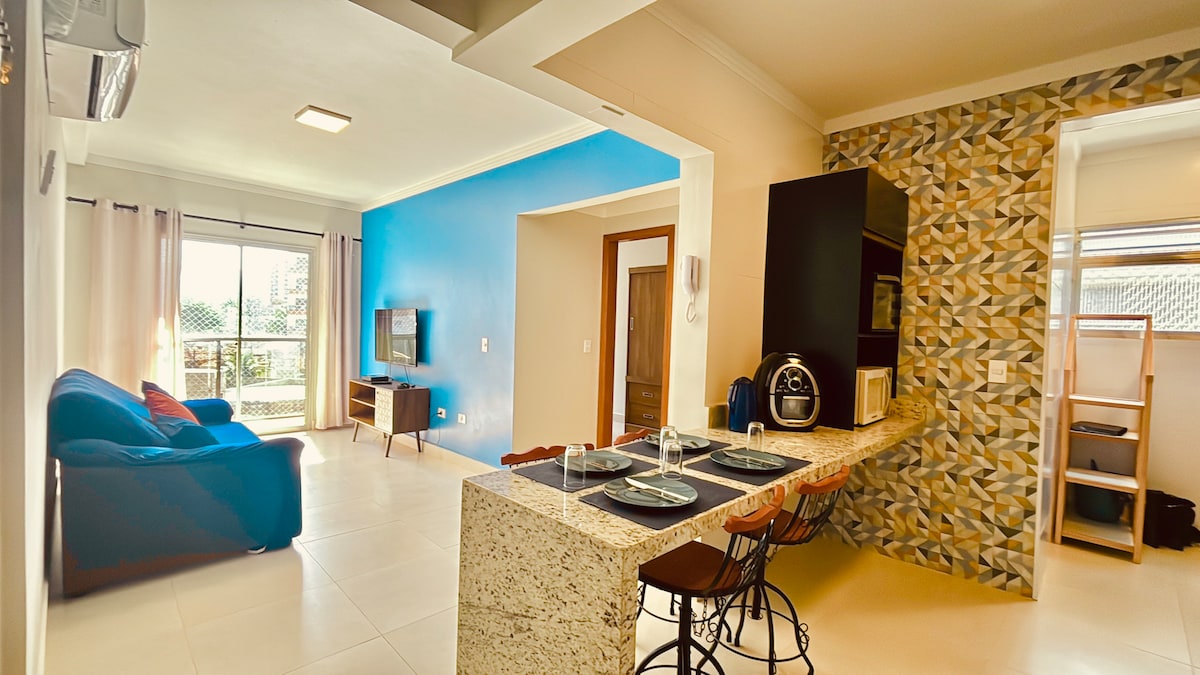 LIMPEZA,CONFORTO E EXCELENTE LOCALIZAÇÃO FAZEM SENTIDO PRA VOCÊ? Se sim, seja muito bem vindo a um dos melhores AIRBNB da Praia Grande, projetado com muito bom gosto, venha se surpreender ! FRENTE MAR! AR CONDICIONADO! O mais completo e acolhedor do Caiçara, prédio recém entregue, completo em eletros, smart TV 55 pol wi fi ,bancada pra home office. Churrasqueira na sacada com linda vista do mar pra relaxar, garagem coberta ,tela nas janelas portaria 24 hs ,planejado pra uma experiência única.