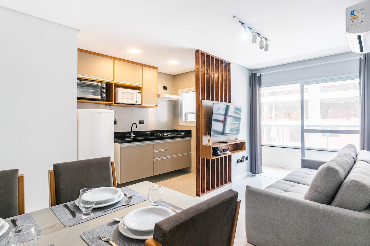 Apartma s 55 m² je idealen za pare in poslovneže na poslovnih potovanjih. Ima vse, kar bi pričakovali od stanovanja: praktičnost in tehnologijo. Če boste novo leto preživeli v Santosu, lahko uživate v prazničnih dogodkih, ne da bi sploh zapustili stavbo. Z bazena lahko uživate v razgledu na morje, ognjemetu in prazničnem vzdušju mesta, ne da bi se morali ukvarjati s prometom, gnečo ali naporno vožnjo po ognjemetu.