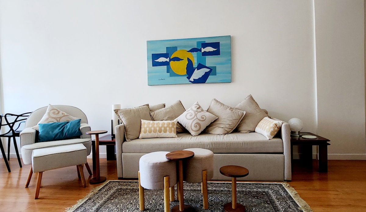 Polna in tiha garsonjera za največ 3 osebe, poleg podzemne železnice, pred Praia do Flamengo. Strateška lokacija v bližini letališča Santos Dumont in glavnih znamenitosti mesta. 24-urni vratar, samostojni vstop, popolnoma opremljena kuhinja, 1 zakonska postelja, 1 raztegljiv kavč, 42-palčni pametni televizor, 350 mega internet, klimatska naprava, stropni ventilator, toaletne potrebščine, pralni stroj, posteljnina, brisače, zatemnitvene zavese, plinski tuš.