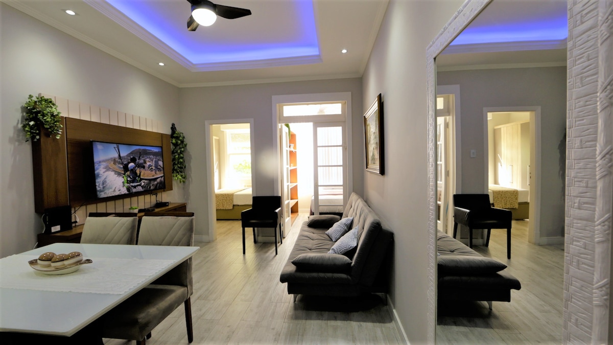 Udoben apto na eni od najboljših lokacij v RJ. 24-urna vhodna vrata, primerna sredstva, ki ponujajo tišino in mir. Z internetom 700 megas. Equipado (2 stropna ventilatorja,klimatska naprava, TV, pralni stroj,mikrovalovna pečica, hladilnik, štedilnik, električna prha itd.). Ima 1 zakonsko posteljo in 1 raztegljiv kavč za 2 osebi. Front to Aterro do Flamengo, to the beach, next to the museum of the Republic, 600m from the metro, bus stop and bike station in front of the building. Esquina z barom Zeca Pagodinho.