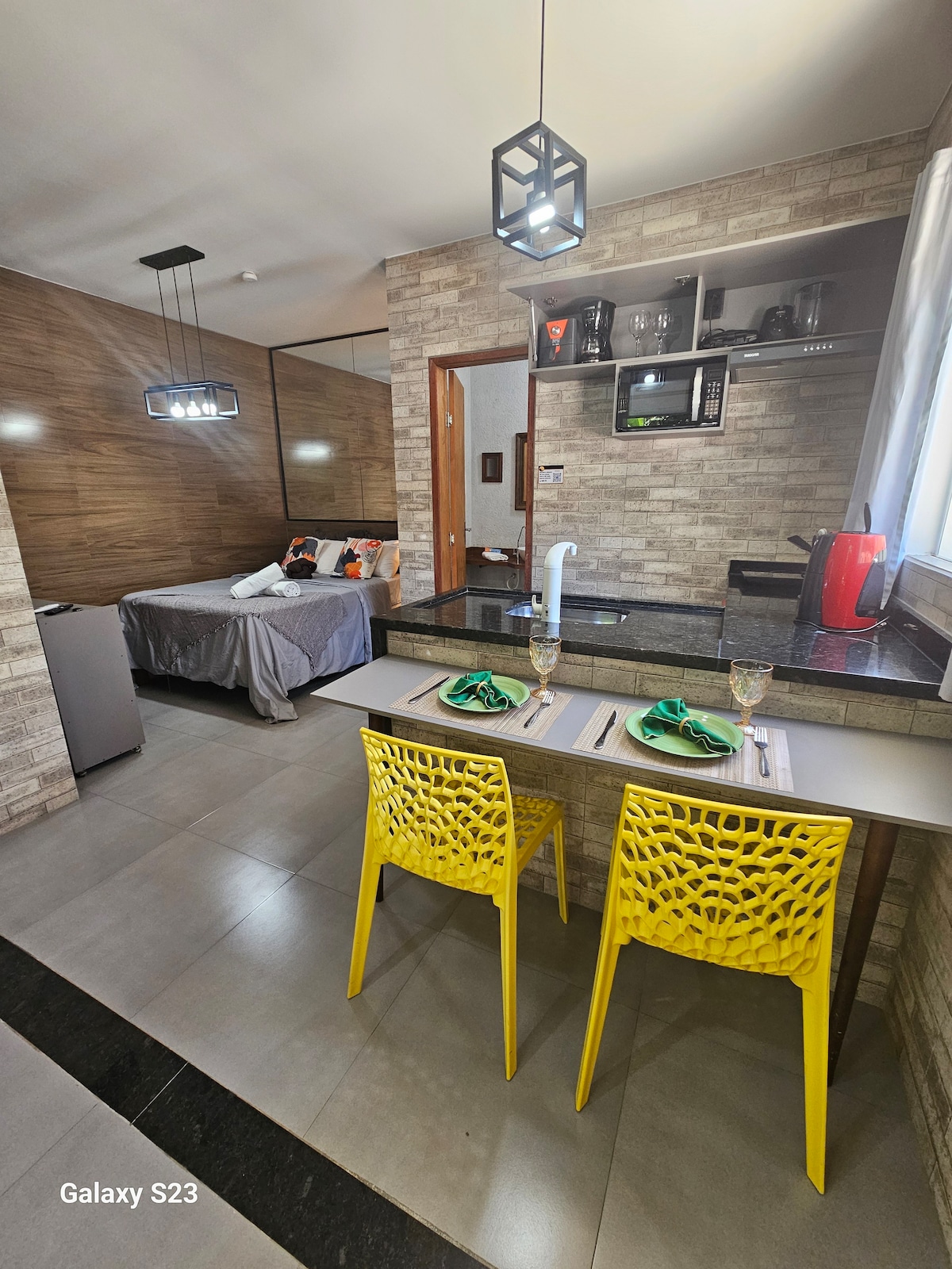 Suíte para casal piscina e cozinha 350m do mar