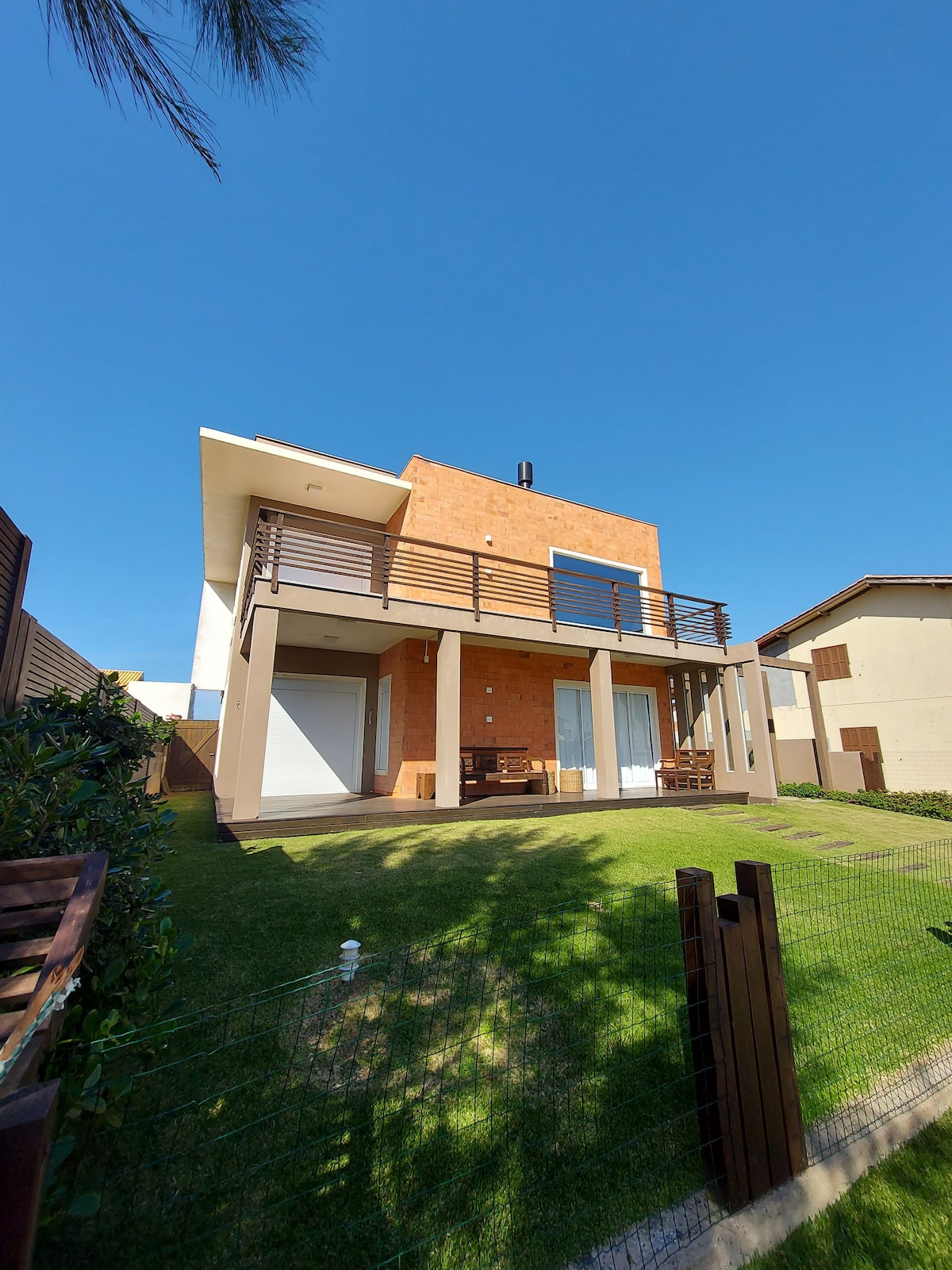 Brand new air conditioned house high standard with 170m² perfect for who is seeking an amazing place for incredible vacations, with much comfort, safety and tranquility. Located in a closed condo in front of Ibiraquera Lake with enrance thru Geral do Rosa, 5 minutes by car from Praia do Rosa and easy access to all the beaches in Garopaba and Imbituba region. The house is located 50m from the lake, perfect for nature and aquatic sports lovers.