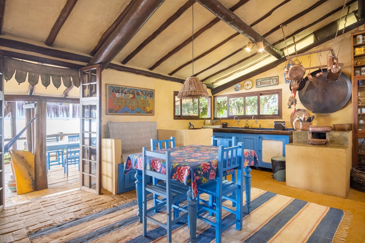 A place with the most incredible view of the sea, views of Flamengo Bay, Anchieta Island, Santa Rita Beach, Lamberto, Ribeira and others… With a private trail in the Atlantic Forest, 2 incredible viewpoints, small waterfalls with crystal clear water! With security and privacy, the Greece-themed house has a comfortable and structured 300m2, airy and fresh and with new air conditioning in all bedrooms. The closest beach is Lamberto Beach, you have to walk 400m, but we recommend going by car!