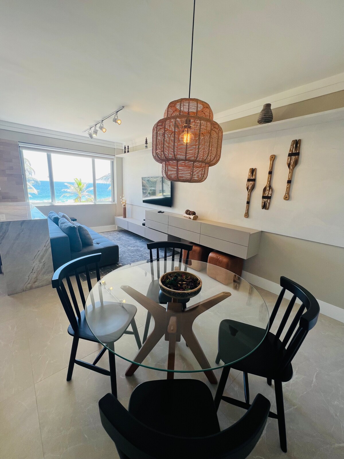 Dobrodošli v butiku Bahia, kjer se razkošje sreča z spokojnostjo valov in šarmom zgodovinskega okrožja Barra. To stanovanje je bilo skrbno zasnovano, navdihnjeno z zasnovo butičnih hotelov, z udobnim pohištvom in barvno paleto, ki odraža spokojnost oceana, ki zagotavlja prijetno in prefinjeno okolje. Občutite morski vetrič in uživajte v bahianskem soncu ter se vsako jutro zbudite ob osupljivem pogledu na morje. Počutite se kot doma in »Sorria, você está na Bahia!«