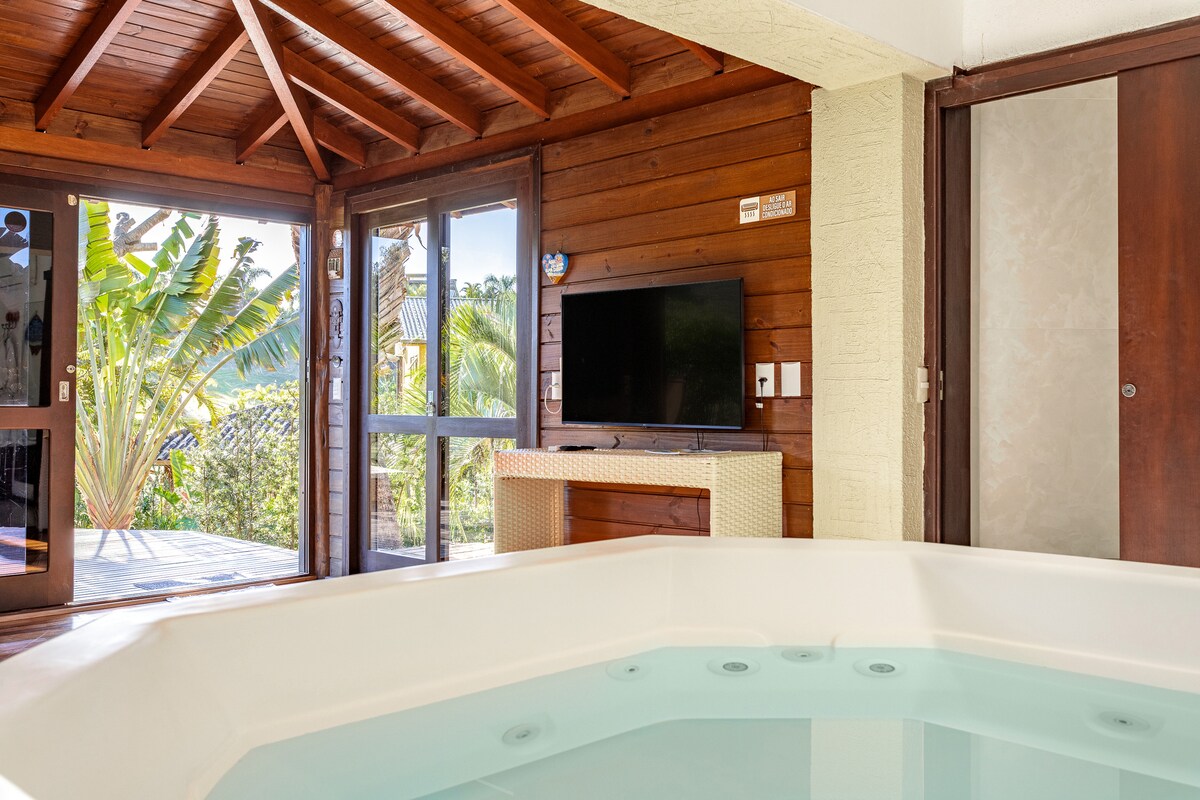 *Sprostite se v tem mirnem in elegantnem prostoru v kraju Praia do Rosa. *Okolje, polno energije in miru ob naravi ter očarljive lagune sredi Ibiraquera! * Notranji jacuzzi, ki se lahko uporablja skozi vse leto s plinskim ogrevalnim sistemom za sprostitev telesa in duha. * Plinska prha, ki zagotavlja popolno udobje in sprostitev kopalnice. * Širok teren s popolno zasebnostjo za vaš počitek v Praia do Rosa. * Celotno podstrešje, da uživate v najboljših počitnicah v svojem življenju!!