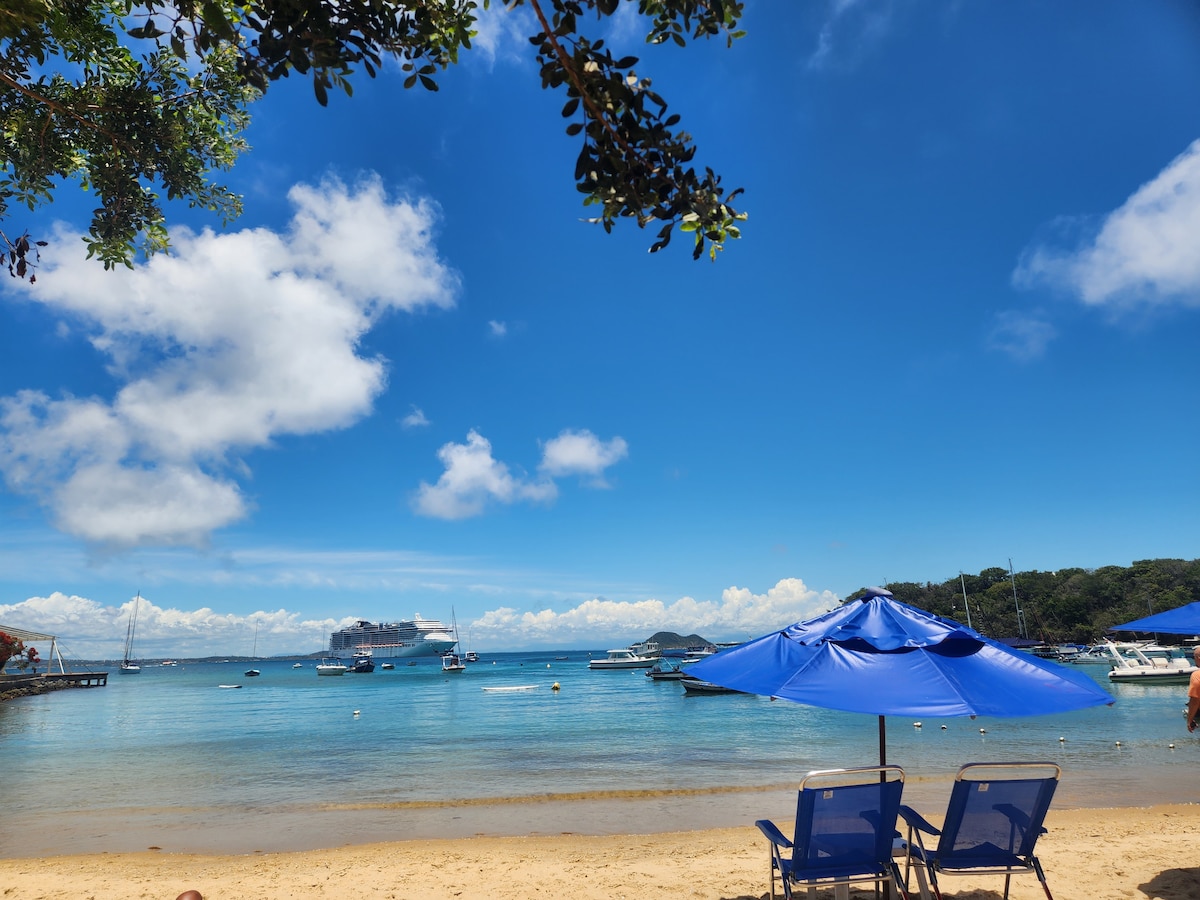 1 predelano stanovanje pred morjem, 100 m2 s popolnim razgledom. Sončni zahod pred hišo. Preprosta hiša, zelo očarljiva bucolic Buzios Roots Ni garaže, vendar je mogoče parkirati na ulici pred hišo, ki je zelo varna z zunanjimi varnostnimi kamerami. Integrirana dnevna soba in spalnica. 1 zakonska postelja (Queen) in 1 raztegljiv kavč z 2 enojnima posteljama Hiša je za največ 4 osebe, vsi spijo v istem okolju. 1 kopalnica in 1 mini omara. Kuhinja brez mikrovalovne pečice. Vrtni mobilni žar