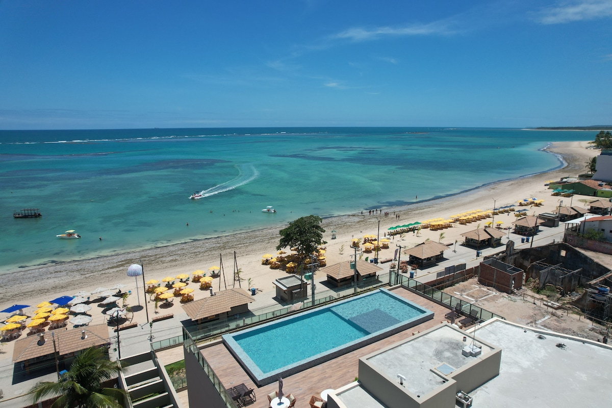 Bem-vindo! Apartamento de um quarto com espaço moderno e aconchegante na orla de Tamandaré, em frente às piscinas naturais e no melhor trecho de mar. Completo e equipado, acomoda até 5 pessoas com conforto, oferecendo cozinha completa, ar-condicionado na sala e quarto, Wi-Fi, TV na sala e quarto e varanda com vista para o mar. O prédio conta com um Café, Conveniência, lavanderia, Rooftop com piscina de borda infinita, churrasqueira e academia. Perfeito para relaxar e curtir o melhor do litoral.