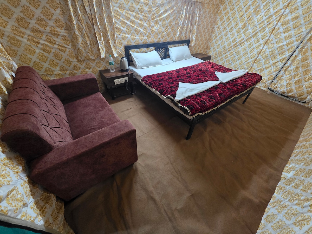 Triveni Awas ponuja mirno in razkošno bivanje, le 300 metrov od božanskega Triveni Sangama in 50 metrov od Sangam Snan Ghata. Potopite se v duhovno vzdušje in uživajte v sodobnem udobju. Naš čudovito oblikovani šotor združuje naravo z eleganco in zagotavlja nepozabno doživetje ob svetem sotočju Gange, Yamune in Saraswatija. »¥ ¥¥ ¥¥¥ ¥¥ ¥ ¥ ¥ ¥¥¥ ¥ ¥ ¥ ¥¥ Odkrijte mir in dediščino v Triveni Awas!