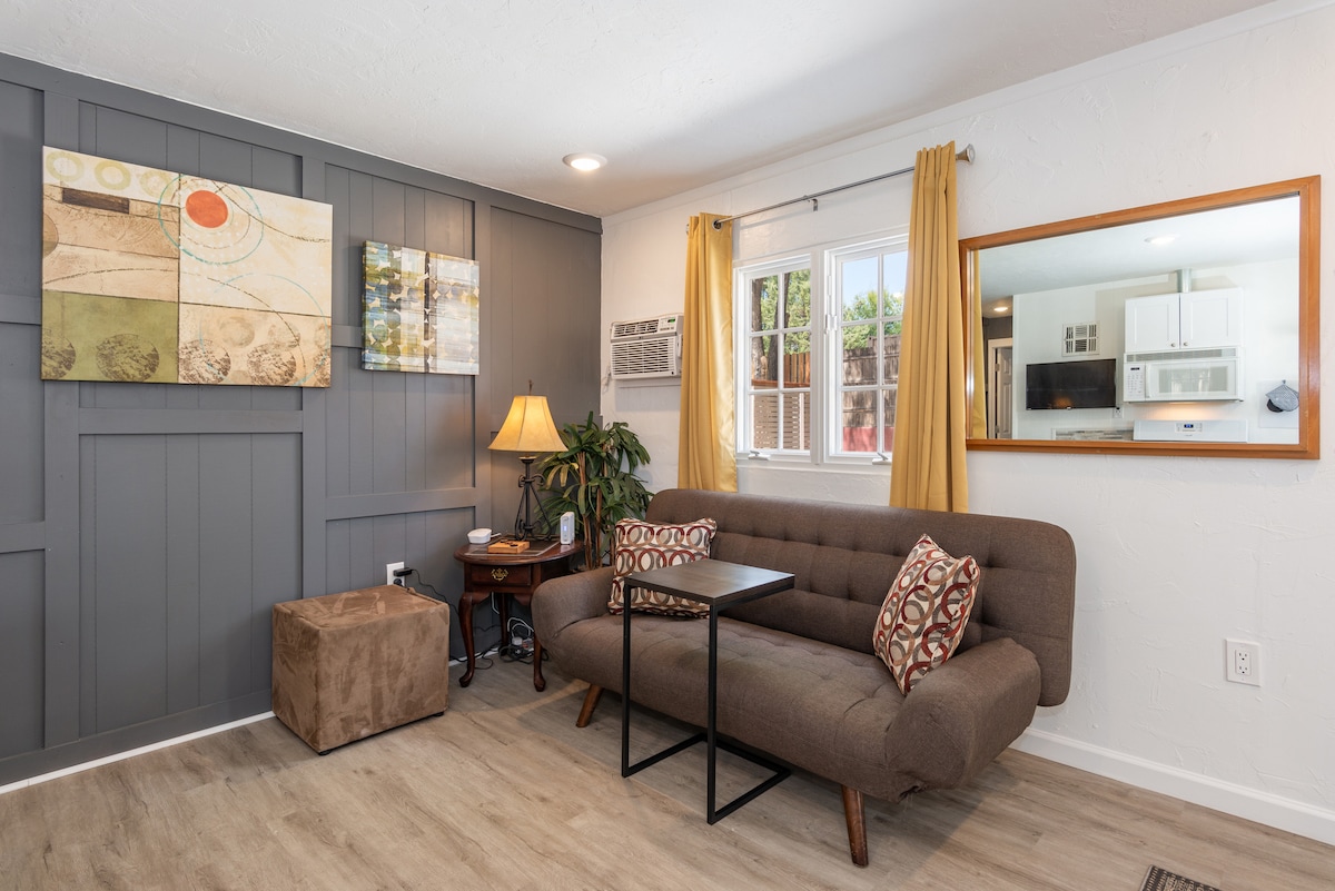 Očarljiva in sproščujoča hiška v garsonjeri, ki je le kratek sprehod stran od središča Prescotta in trga sodne hiše. Lokacija vam bo všeč! Ta udoben dragulj se nahaja v eni najstarejših sosesk Prescotta na mirnem in priročnem mestu, ki se nahaja manj kot miljo od zgodovinske Whisky Row. Udobno in popolnoma opremljeno, ki ustreza vašim potrebam. To na novo zgrajeno, zasebno prenočišče lahko sprejme tri osebe, ima polno kuhinjo in kopalnico ter čudovito sprednjo verando. Preprosto se sprehodite do restavracij in trgovin!