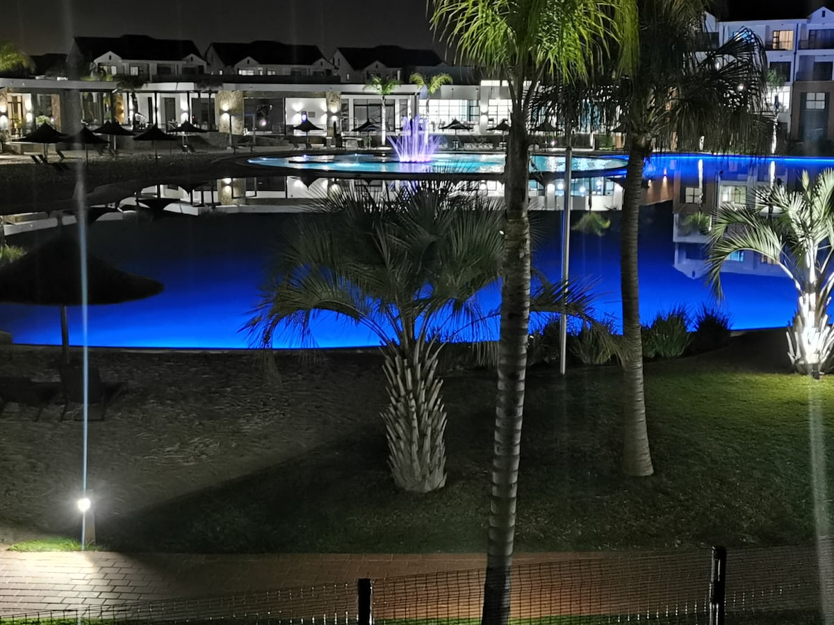 Come as family or friends to a water lovers paradise. There are many other activities as well to keep you entertained. Enjoy the lagoon view from balcony and main in suite bedroom. Apartment has; uncapped and unshaped WiFi smart TV (DStv, Netflix, Disney+) games room board games playgrounds Spa Gym Canoeing Lagoon view Lagoon access Restaurant Car wash
