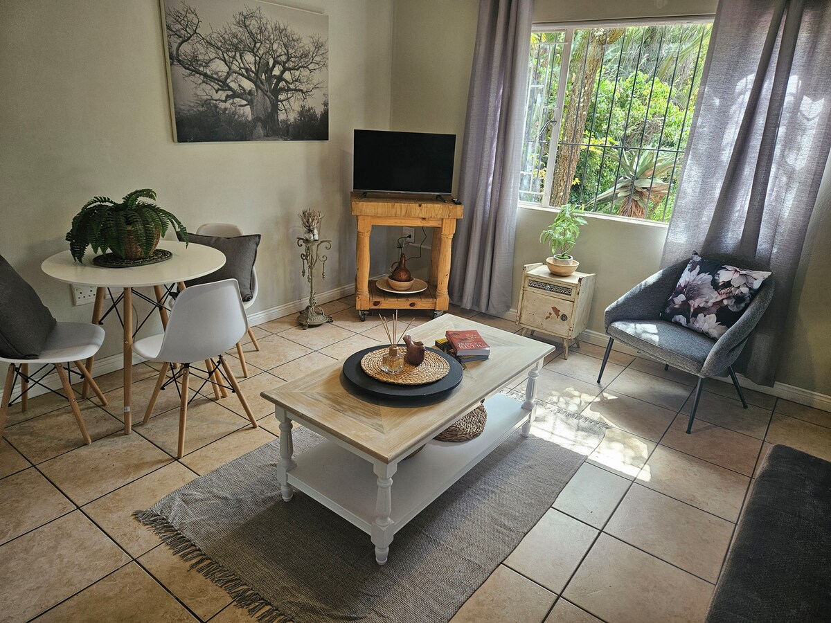 Lepo opremljeno dvosobno stanovanje s polno kuhinjo. Solar Backup Power is provided for Lights, TV and high speed Fibre Wi-Fi. Zakonska postelja v vsaki sobi je kot nalašč za poslovno bivanje ali bivanje v prostem času. Stanovanje v pritličju ima zasebno teraso in vrt, v katerem lahko uživate. Pokrito parkiranje Na voljo so različne vrste kave, čaja in sladkorjev. Bazen lahko uporabljajo gostje Stanovanje je po vsaki rezervaciji skrbno očiščeno in razkuženo.