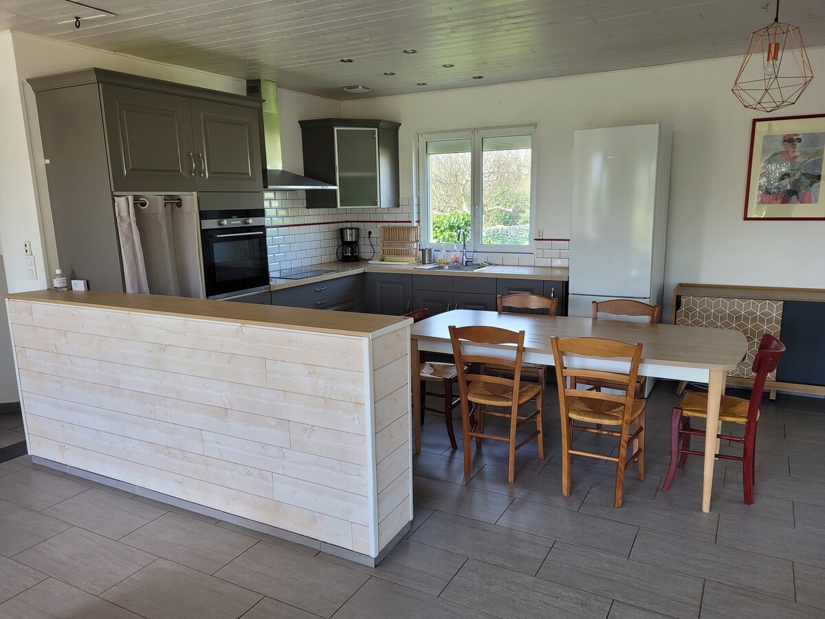 Mirna hiša, idealna za družine (5 p), samostojna, velika terasa in lasten vrt. Kontaktirajte nas za najem 3. spalnice, dostop od zunaj s straniščem in kadjo fotografije. € 40 na noč. Nahaja se 13 km od oceana, idealen najem za obisk Finistère od severa do juga, od zahoda do vzhoda. Na koncu sveta! Menez Hom (330 m) je oddaljen 5 minut, ponuja 360-stopinjski pogled in daje okus vsega, kar vas čaka! Bogato in intenzivno kulturno življenje...