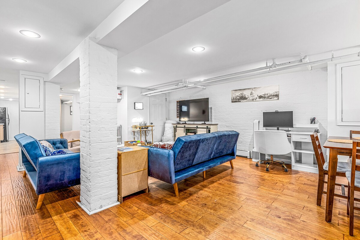 Sončna angleška klet 1BR v Bloomingdaleu s popolnoma zasebnimi vhodi in vso opremo. Pogled na park Crispus Attucks. Na voljo je 1 zasebno parkirno mesto. Komplet pisalne mize, ki je pripravljen na WFH. Zakonska postelja (Queen) + 2 spalna kavča z blazinami. Založena kuhinja, 2 pametna televizorja, gramofon, založen bar, prigrizki in vsa osnovna oprema. Hišni ljubljenčki so dobrodošli! Nova nadgrajena klimatska naprava. Osrednje območje, primerno za družine, mirno območje. Sprehodite se do podzemne železnice, tržnice Union Market in lokalnih jedi. Dvorišče, primerno za pse (skupno); kajenje je dovoljeno zunaj.