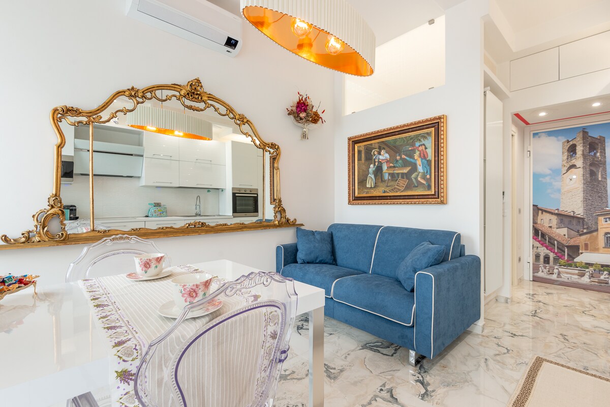 In edificio storico nel cuore del borgo di Lovere, bilocale di charme con grande terrazza. Completamente restaurato nel 2022. Composto da camera matrimoniale, bagno privato con forniture da hôtellerie, soggiorno con angolo cottura, in cui è presente un comodo divano letto. Situato a 20 m. dalla piazza principale e dai battelli per Montisola è una base ideale per escursioni sul lago d'Iseo, le città di Bergamo/Brescia e le vicine montagne. Nel 1784 in questo edificio naque Santa Vincenza Gerosa.